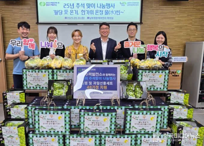 [ 한국미디어뉴스 김서안 기자 ] 남양주시는 9월 30일 남부희망케어센터가 한국수력원자력(주)팔당수력발전소의 후원을 받아 ‘팔당愛 온기, 한가위 온정 물(水)씬~’이라는 이름으로 2025년 추석 명절맞이 나눔행사를 진행했다고 밝혔다.