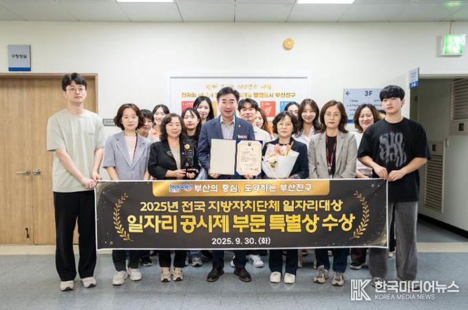 [ 한국미디어뉴스 이원영 기자 ] 부산 부산진구가 고용노동부 주관 ‘2025 전국 지방자치단체 일자리대상’ 지역일자리 목표 공시제 부문에서 특별상을 수상했다고 밝혔다.