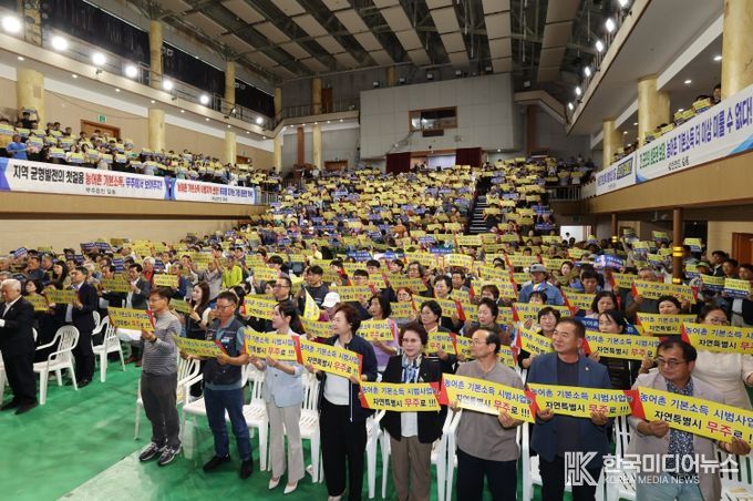[ 한국미디어뉴스 이종철 기자 ] 무주군이 지난 1일 무주예체문화관 대강당에서 농어촌 기본소득 시범사업 선정을 촉구하는 범군민 결의대회를 개최했다.