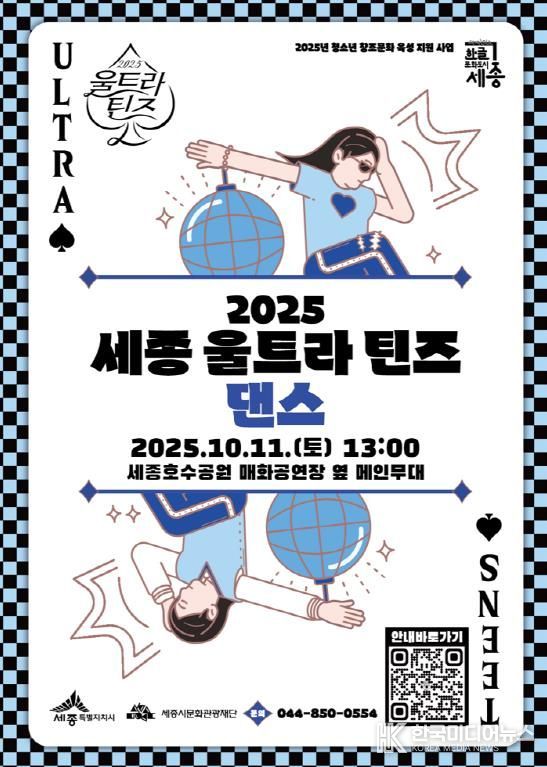 [ 한국미디어뉴스 이보영 기자 ] 세종특별자치시가 오는 11일 오후 1시 세종호수공원에서 세종한글축제 메인무대를 춤으로 가득 채우는 ‘세종 울트라 틴즈 댄스대회’를 개최한다.