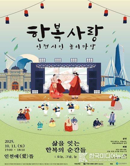 [ 한국미디어뉴스 이원영 기자 ] 인천광역시는 10월 15일 인천시민의 날과 10월 21일 한복의 날을 맞아 오는 10월 11일 시청 인천애(愛)뜰에서 ‘2025년 한복사랑 인천시민 놀이마당’을 개최한다고 밝혔다.