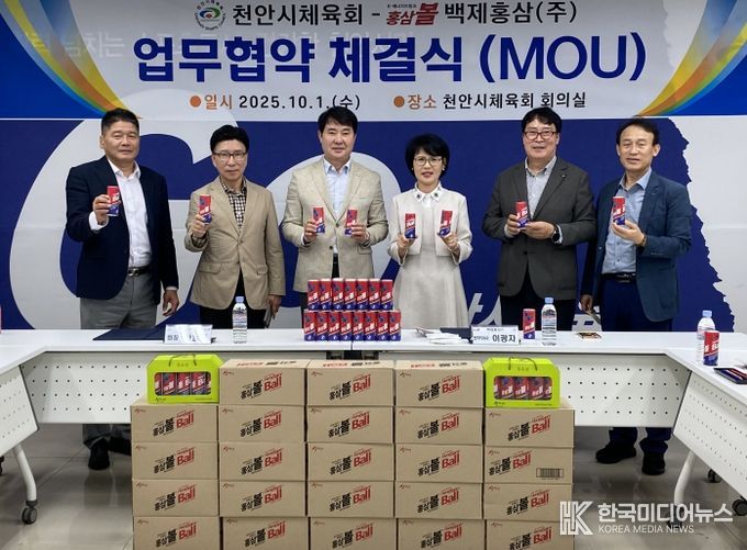 [ 한국미디어뉴스 김서안 기자 ] 천안시체육회는 지난 1일 백제홍삼㈜와 체육인 건강증진을 위해 업무협약을 체결했다고 밝혔다.