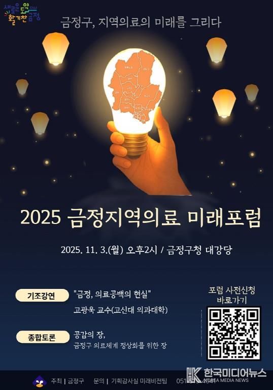 [ 한국미디어뉴스 이원영 기자 ] 부산시 금정구는 오는 11월 3일 금정구청 1층 대강당에서 침례병원 파산 이후 지속되어 온 지역 의료공백 문제를 논의하고 의료체계 정상화 방안을 모색하기 위해 '금정 지역의료 미래 포럼'을 개최한다.