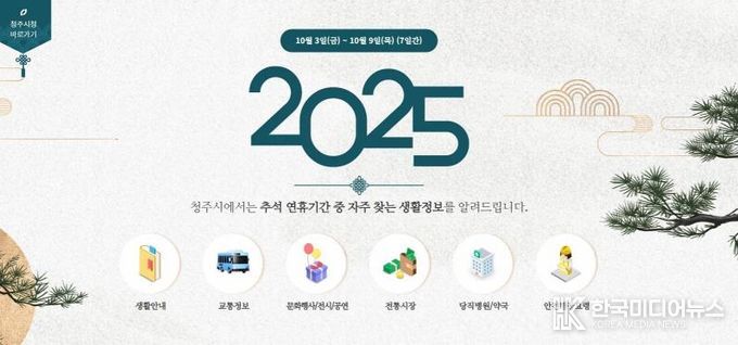 [ 한국미디어뉴스 김풍옥 기자 ] 청주시는 시민들이 연휴 기간에 필요한 생활정보를 신속하게 얻을 수 있도록 오는 9일까지 시 누리집을 개편해 운영한다고 2일 밝혔다.
