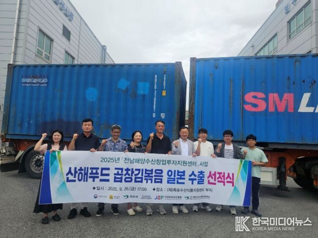 [ 한국미디어뉴스 이종철 기자 ] (재)목포수산식품지원센터는 9월 26일, 전남해양수산창업투자지원센터 사업 수혜기업인 산해푸드(대표 오시윤)가 일본 바이어와 체결한 2만3천 달러(한화 약 3천2백만 원) 규모의 곱창김 제품 수출 계약에 따라 센터에서 선적식을 개최했다고 밝혔다.