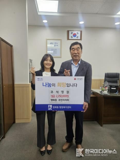 영화동 주민자치회는 명절마다 위원들이 뜻을 모아 이웃돕기에 참여하고 있으며 기부한 성금은 온누리상품권을 구매하여 관내 취약계층에게 골고루 배분될 예정이다.