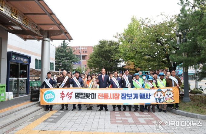 [ 한국미디어뉴스 이보영 기자 ] 상주시는 추석 명절을 앞두고 경기침체로 어려움을 겪고 있는 전통시장 상인들의 사기 진작과 내수경기 활성화를 위해 10월 2일에 전통시장 장보기 행사를 진행했다.