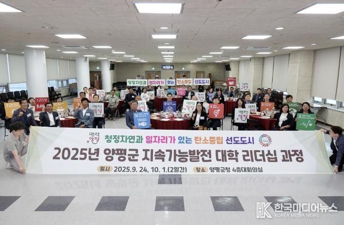 [ 한국미디어뉴스 김서안 기자 ] 양평군은 지난 9월 24일과 10월 1일 양일간 군청 대회의실에서 ‘2025 양평군 지속가능발전대학 리더십 과정’을 성공적으로 마무리했다고 밝혔다.