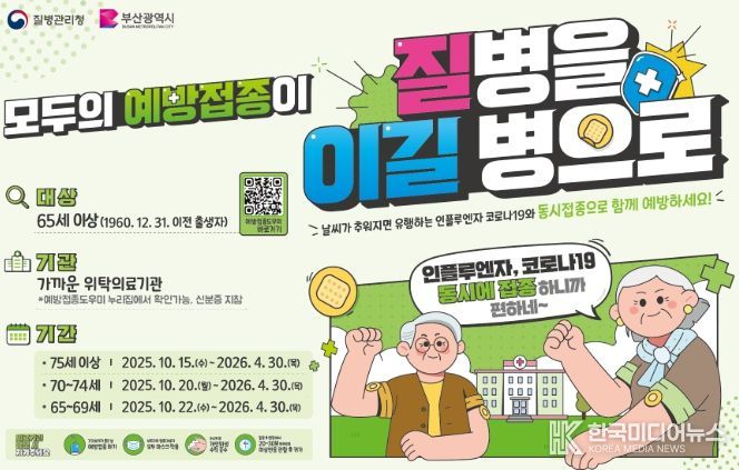 [ 한국미디어뉴스 이원영 기자 ] 사상구보건소는 오는 10월 15일부터 내년 4월까지 65세 이상 어르신을 대상으로 인플루엔자(독감)·코로나19 동시 접종을 진행한다고 밝혔다.