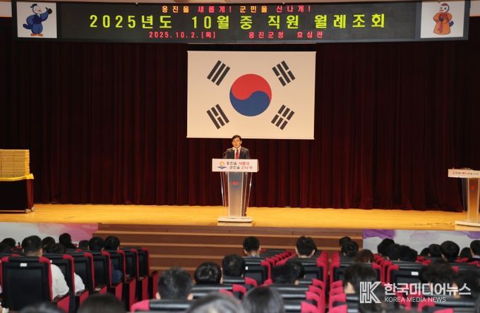 [ 한국미디어뉴스 이원영 기자 ] 옹진군은 지난 2일, 군청 효심관에서 전 직원들이 참석한 가운데 ‘10월 중 월례조회’를 개최하고, 2026년 본예산 편성과 연말 사업 마무리, 가을철 재난 대비 및 추석 연휴 대응 방안 등을 공유했다.