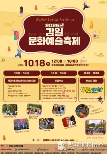 [ 한국미디어뉴스 김서안 기자 ] 하남시 감일청소년문화의집은 오는 10월 18일 오후 12시부터 18시까지 감일문화공원(감일공공복합청사 뒷편)에서 '제2회 감일문화예술축제'를 개최한다.