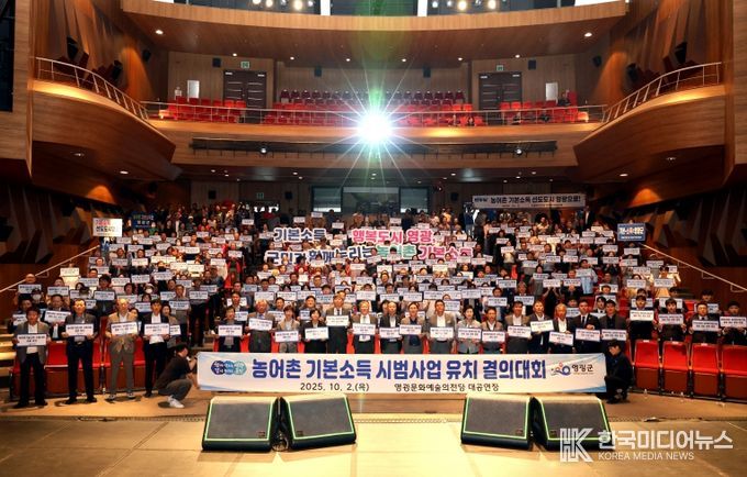 [ 한국미디어뉴스 이종철 기자 ] 영광군은 지난 10월 2일 오후 2시, 영광문화예술의전당 대공연장에서 '농어촌기본소득 시범사업 유치 결의대회'를 성황리에 개최했다.