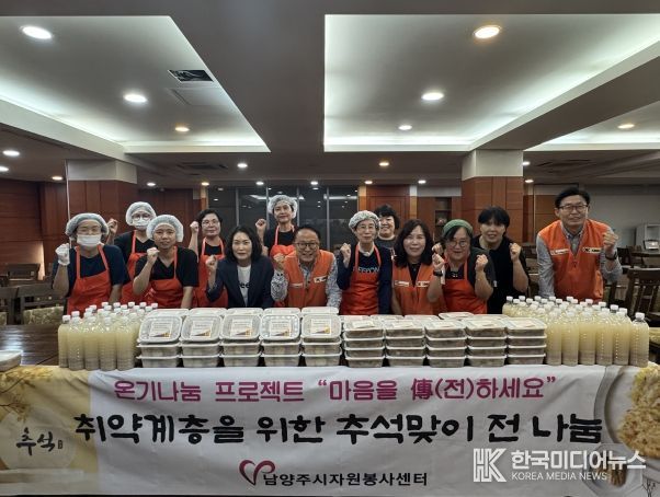[ 한국미디어뉴스 김서안 기자 ] 남양주시자원봉사센터는 추석맞이 집중 주간을 맞이하여 9월 25일부터 오는 10월 3일까지 약 1,300명의 관내 취약계층을 대상으로 ‘추석맞이 전 나눔 활동’을 펼쳤다.