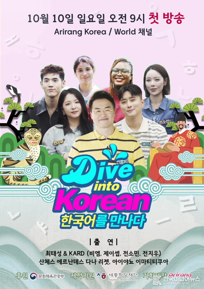세종학당재단이 아리랑국제방송과 공동 제작한 교육 방송 ‘한국어를 만나다(Dive into Korean, 4부작)’도 한글 주간에 맞춰 10월 10일 오전 9시에 아리랑TV를 통해 전 세계 107개국에 첫 방송 된다. 인기 한국사 강사 최태성이 진행을 맡은 이번 프로그램은 세종학당 장학생을 포함한 실제 외국인 학습자들이 함께 참여해 학습 현장의 생동감을 더했다.