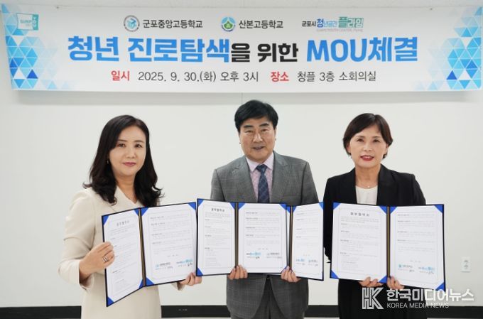 [ 한국미디어뉴스 이보영 기자 ] 군포시 청년공간플라잉(센터장 조남)은 지난 9월 30일 군포중앙고(교장 이은경), 산본고(교장 김은정)와 함께 2025 창업스쿨 사업 관련 업무협약을 맺었다.