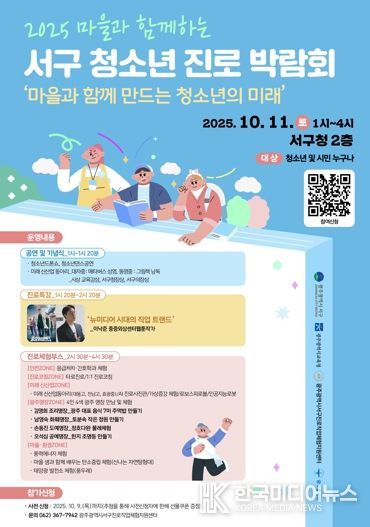[ 한국미디어뉴스 이종철 기자 ] 광주광역시 서구는 오는 11일 서구청 들불홀에서 ‘2025 마을과 함께하는 청소년 진로 박람회’를 개최한다.