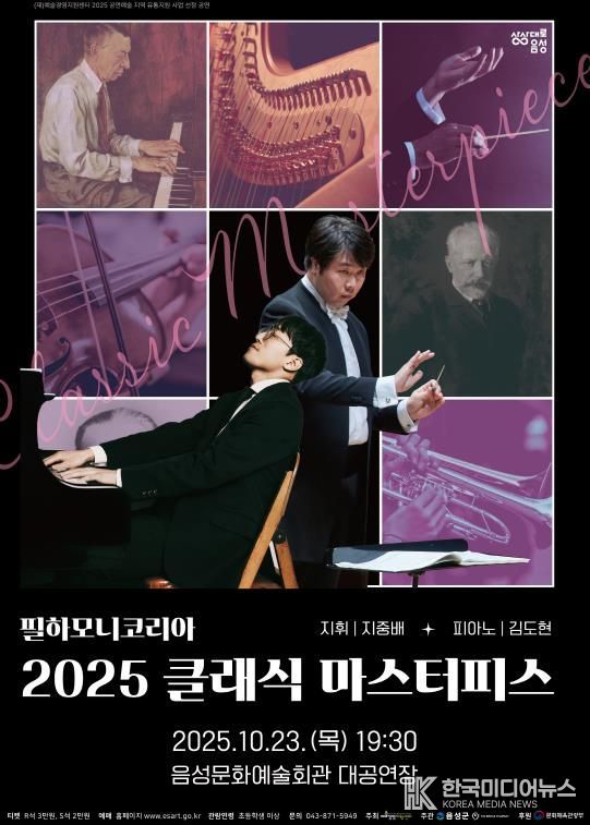 [ 한국미디어뉴스 김풍옥 기자 ] 음성군은 이달 23일 음성문화예술회관 기획 공연으로 필하모니코리아 '2025 클래식 마스터피스'를 선보인다.