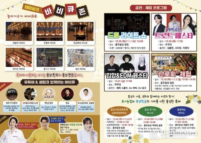 특히 ‘홍성상설시장 소비진작 행사’는 지역 상권 활성화에 힘을 보탠다. 축제 현장에서는 한우·한돈 할인행사를 통해 구입한 고기를 바로 구워 먹을 수 있는 구이존이 운영되며, 시장 내 다양한 먹거리가 제공돼 방문객의 만족도를 높일 예정이다.