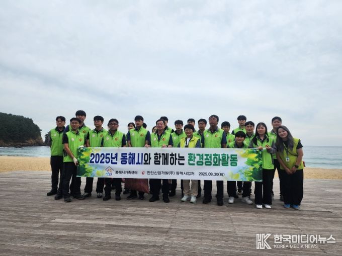 [ 한국미디어뉴스 이원영 기자 ] 동해시가족센터와 한전산업개발 동해사업처(처장 이영주)는 9월 30일 오전 동해시 한섬해변 일대에서 해양쓰레기 정화활동‘2025 비치코밍, 소중한 환경을 위해!’를 실시했다.