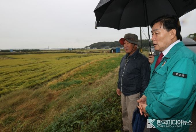 [ 한국미디어뉴스 이원영 기자 ] 옹진군수는 지난 6일에 내린 집중호우와 강풍으로 인해 벼 도복 피해를 입은 북도·영흥면을 방문하여 피해 상황을 점검했다.