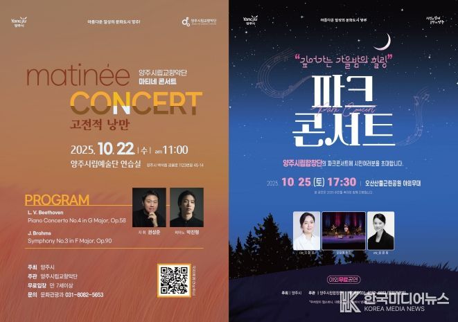 양주시가 깊어가는 가을 정취 속에서 시민들에게 품격 있는 문화예술 향유 기회를 제공하기 위해 오는 22일 ‘마티네 콘서트’와 25일 ‘파크콘서트’를 연이어 개최한다.