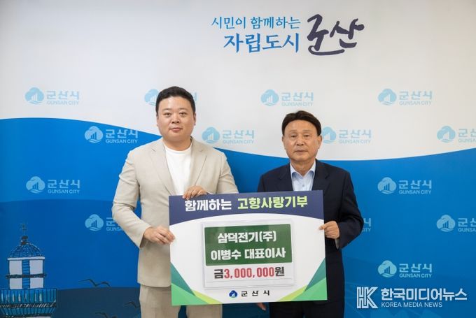 [ 한국미디어뉴스 이종철 기자 ] 군산시는 삼덕전기(주) 이병수 대표이사가 고향사랑기부금 300만 원을 기탁했다고 밝혔다.