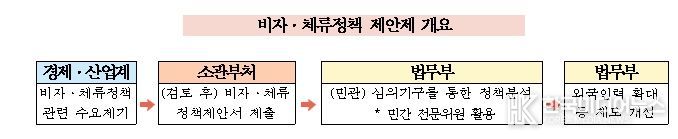 또한 체계적·균형적 심의를 통한 비자정책 결정 체계를 강화하고 정책의 예측가능성을 제고하기 위하여 '비자·체류정책심의위원회'의 설치·운영 근거를 법령에 규정하는 내용의 ‘비자·체류정책제안제 법제화’를 추진할 계획이다.