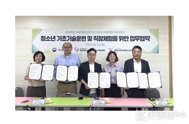 [ 한국미디어뉴스 이보영 기자 ] 포항시청소년재단 포항시학교밖청소년지원센터는 최근 학교 밖 청소년의 기초기술훈련과 직장체험 기회 확대를 위해 지역 사업장 2곳과 업무협약을 체결했다고 밝혔다.