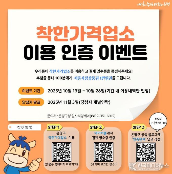 착한가격업소는 물가 안정을 위해 합리적인 가격과 양질의 서비스를 제공하는 업소다. 은평구는 이번 이벤트를 통해 주민들이 더욱 많이 이용할 수 있도록 참여형 이벤트를 마련했다.