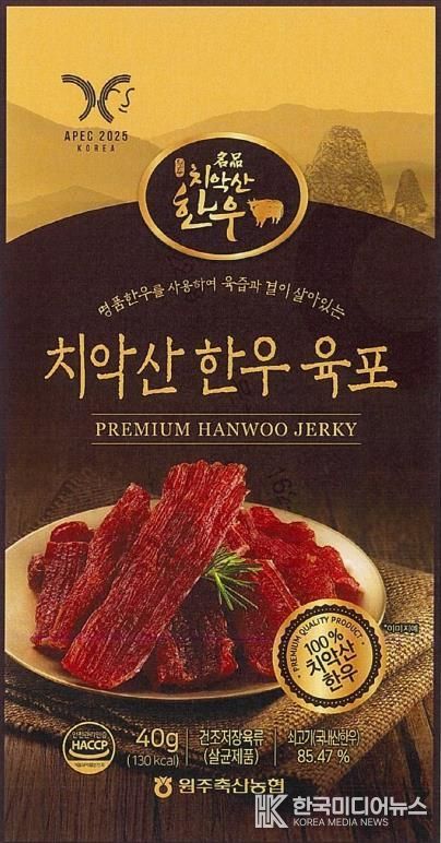 [ 한국미디어뉴스 이원영 기자 ] 원주시 대표 한우 브랜드인 치악산한우 육포가 2025년 아시아태평양경제협력체(APEC) 정상회의 공식 협찬품으로 선정됐다.