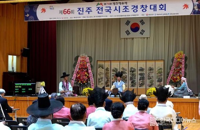 [ 한국미디어뉴스 이원영 기자 ] 한국전통예악총연합회 진주통합지부는 지난 12일 촉석초등학교 강당에서 시조경창대회 참가자 및 관람객 등 300여 명이 참석한 가운데 ‘제66회 전국시조경창대회’를 성황리에 개최했다.