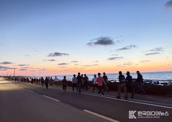 [ 한국미디어뉴스 이원영 기자 ] 서귀포시는 일상생활 속 1일 7천 보 걷기 활성화를 위하여 11일 새벽 5시 신산리 마을주민들과 함께하는 '힐링 UP! 혼디모영 걸을락(樂)' 신산마을걷기를 운영했다.