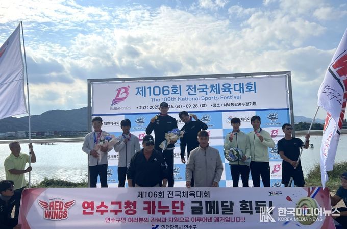 [ 한국미디어뉴스 이원영 기자 ] 연수구의 직장운동경기부 ‘연수구청 카누단(감독 강진선)이 지난달 26일부터 28일까지 부산 강서구 서낙동강 카누경기장에서 열린 ‘제106회 전국체육대회’에서 금메달 1개, 은메달 3개, 동메달 1개를 획득하며 인천시의 카누 종목 종합 2위 달성에 힘을 보탰다.