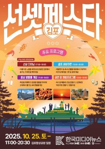[ 한국미디어뉴스 이원희 기자 ] 아름다운 석양을 배경으로 선상 다이닝을 즐길 수 있는 특별한 축제가 김포에서 열린다. 오는 25일 단 하루, 토요일 오전 11시부터 밤 8시 30분까지 대곶면 김포함상공원 일원에서 ‘2025 김포 선셋 페스타 위드(with) 로컬푸드 다이닝’이 개최된다.