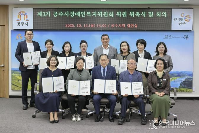 [ 한국미디어뉴스 김서안 기자 ] 공주시는 지난 13일 시청 집현실에서 ‘제3기 공주시 장애인복지위원회 위원 위촉식 및 회의’를 개최하고, 민관이 함께 장애인 정책 현안 해결에 나서기 위한 본격적인 활동을 시작했다고 밝혔다.