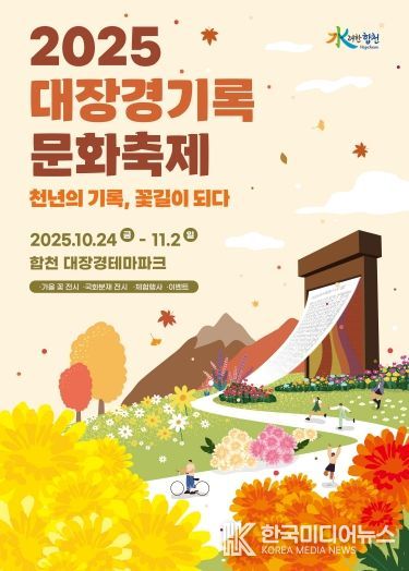 [ 한국미디어뉴스 이원영 기자 ] 합천군은 10월 24일부터 11월 2일까지 10일간, 합천 대장경테마파크 일원에서 '2025 대장경기록문화축제'를 개최한다. 이번 축제는 “천년의 기록, 꽃길이 되다”라는 주제로, 팔만대장경의 기록문화 가치를 아름다운 가을꽃 조형물 전시와 다채로운 체험행사를 통해 관광객을 맞이할 계획이다.