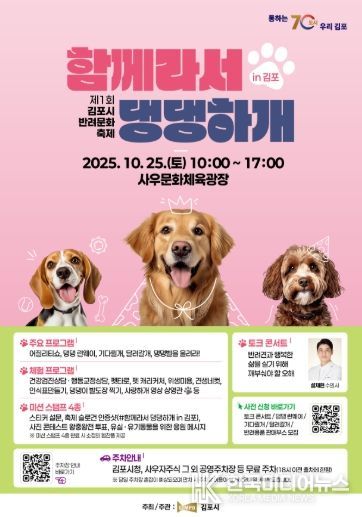 [ 한국미디어뉴스 이원희 기자 ] 김포시는 반려동물과 시민이 함께하는 문화의 장인 제1회 김포시 반려문화축제 '함께라서 댕댕하개 in 김포'가 오는 10월 25일 사우문화체육광장(사우동)에서 개최된다고 밝혔다.
