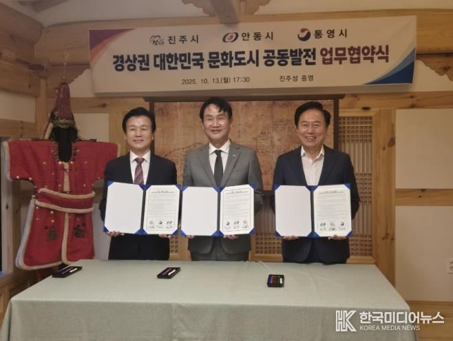 [ 한국미디어뉴스 이원영 기자 ] 경상권을 대표하는 대한민국 문화도시 통영시, 진주시, 안동시가 문화도시의 지속가능성과 상생협력을 위해 손을 맞잡았다.