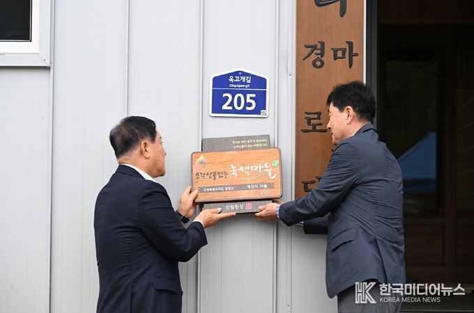 [ 한국미디어뉴스 이원영 기자 ] 평창군은 14일 오전 11시, 평창읍 계장리 마을회관에서 ‘소각 산불 없는 녹색마을’의 우수마을로 선정된 계장리에 현판을 수여했다.