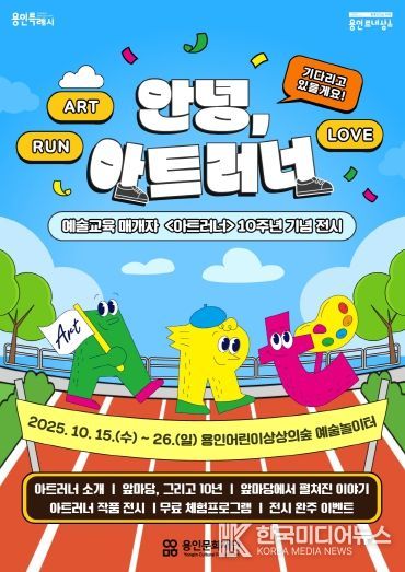 [ 한국미디어뉴스 이원영 기자 ] (재)용인문화재단은 예술교육 매개자 ‘아트러너(Art Runner)’ 사업 10주년을 맞아 오는 10월 15일부터 26일까지 용인어린이상상의숲 예술놀이터에서 기념 전시 '안녕, 아트러너'를 개최한다.