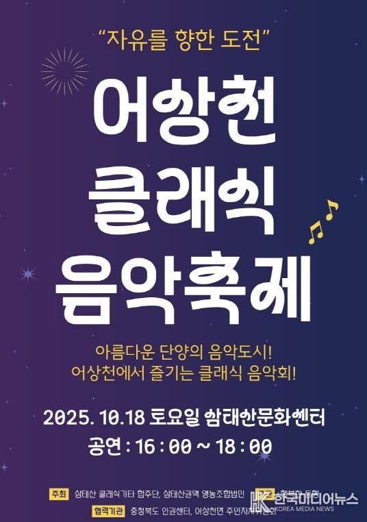 [ 한국미디어뉴스 김풍옥 기자 ] 충북 단양군은 오는 18일, 어상천 삼태산문화센터에서 ‘제3회 어상천 클래식음악축제’가 열린다고 밝혔다.
