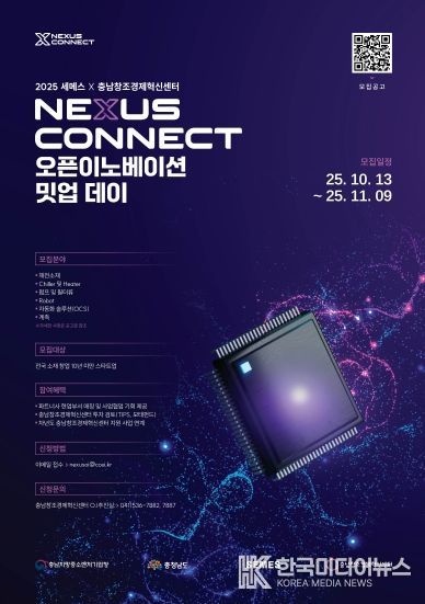 [ 한국미디어뉴스 김서안 기자 ] (재)충남창조경제혁신센터와 세메스(주)는 반도체·디스플레이 장비 혁신을 이끌 유망 스타트업을 발굴·육성하기 위해 ‘2025 세메스 × 충남창조경제혁신센터 Nexus Connect 오픈이노베이션 밋업 데이’ 참여 기업을 11월 9일까지 모집한다.
