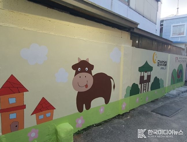 이번 사업을 통해 약 50미터 구간 오래된 담벼락이 생동감 있는 벽화로 새 단장을 마쳤다.