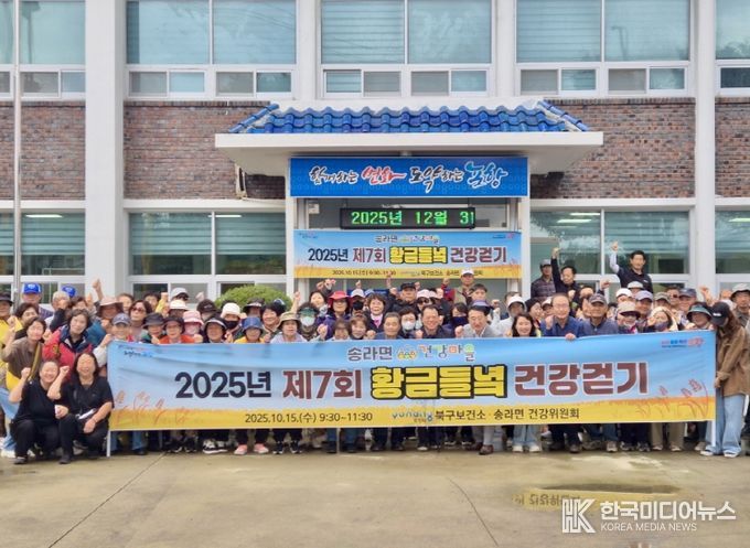 [ 한국미디어뉴스 이보영 기자 ] 포항시 북구보건소는 15일 송라면 광천리 농로길에서 마을 주민 300여 명이 참여한 가운데 ‘제7회 송라면 건강마을 황금들녘 건강걷기 행사’를 개최했다.