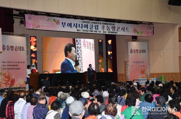 [ 한국미디어뉴스 김서안 기자 ] 부여시니어클럽은 지난 14일 부여국민체육센터에서 노인일자리 및 사회활동 지원사업 참여 어르신 약 1,800명을 대상으로 문화 활동인 ‘孝 동행 콘서트’ 행사를 성황리에 개최했다.