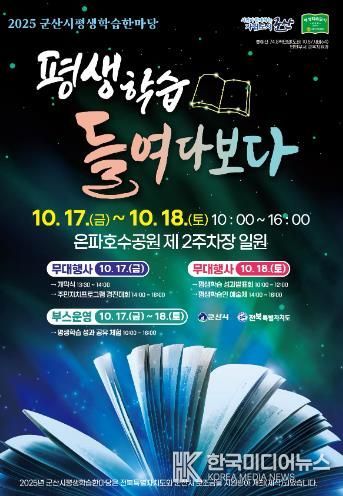 [ 한국미디어뉴스 이종철 기자 ] 군산시가 17일~18일 2일간 은파호수공원 제2주차장 일원에서 ‘2025년 군산시평생학습한마당’을 개최한다.