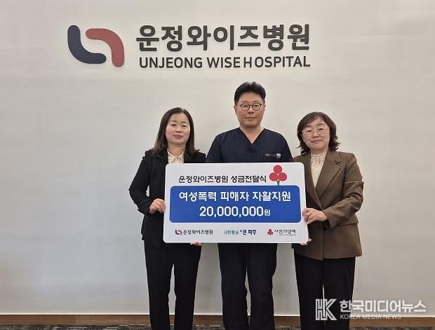 이날 기탁금 전달식에 참석한 노성혁 원장은 “어려운 상황에 놓인 여성폭력 피해자들이 용기와 희망을 되찾는 데 조금이나마 힘이 되고 싶다”라며 “운정와이즈병원은 앞으로도 지역사회 의료기관으로서 사회적 책임을 다하고, 나눔과 상생의 가치를 실천하는 데 앞장서겠다”라고 밝혔다.