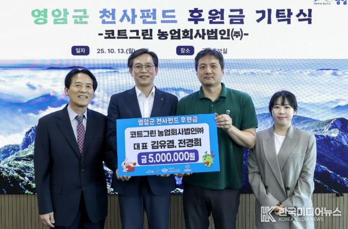 [ 한국미디어뉴스 이종철 기자 ] 코트그린농업회사법인(주)가 13일 영암군청에 천사펀드 500만원, 고향사랑기부금 200만원을 각각 전달했다.