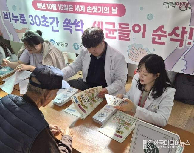 [ 한국미디어뉴스 김서안 기자 ] 양평군은 15일 ‘세계 손 씻기의 날’을 기념해, 양동면 쌍학 2리 마을회관에서 ‘달리는 행복나눔이웃들’ 운영과 연계한 유관기관 합동 홍보 캠페인을 실시했다.