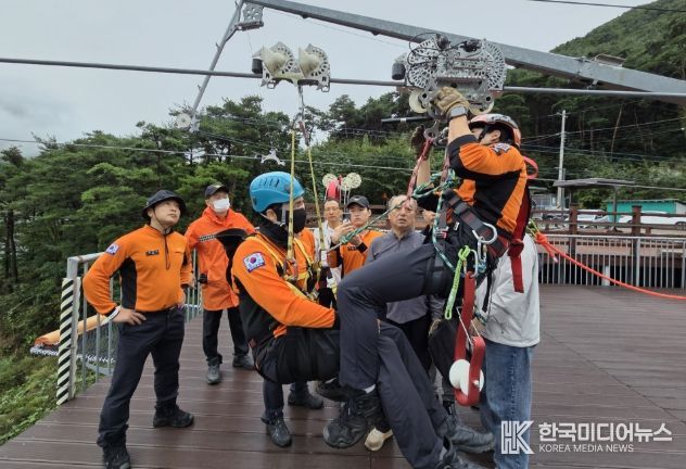 이 과정에서 짚와이어 하강 중 멈춤 상황을 실제로 재현해, 사고 상황에서 전문 구조 장비를 활용하고 요구조자에게 안전하게 접근 후 구조하는 등 실전과 같은 훈련을 선보였다.